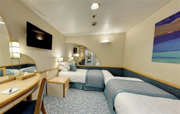 邮轮共8层甲板,最多可容纳650名居民,船上设施包括24小时客舱服务、图书馆、健身房、匹克球场、酒吧、水疗中心、娱乐休息室等,所有套餐均包含餐食、饮品与网络服务。