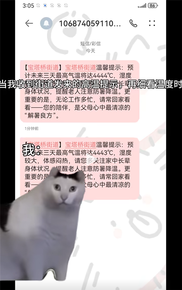 8月19日消息,近日,南京宝塔桥街道的网友接收到一条离谱的高温提醒。