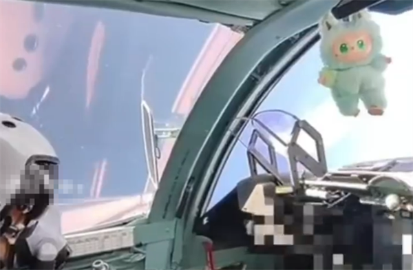 视频中,该飞行员驾驶苏-34战斗机,而在他的座舱上方,挂着一个泡泡玛特的Labubu玩偶,仿佛在向网友炫耀自己的收藏。