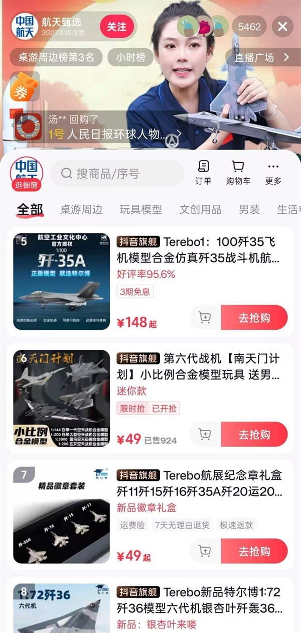 阅兵式同款歼35A已上架直播间 149元!网友求购东风导弹 !