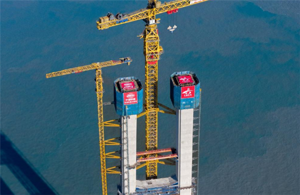 9月7日消息,据媒体报道,由中国铁建大桥局承建的宁波舟山港六横公路大桥二期工程取得重大进展——双屿门特大桥首个主塔顺利封顶。