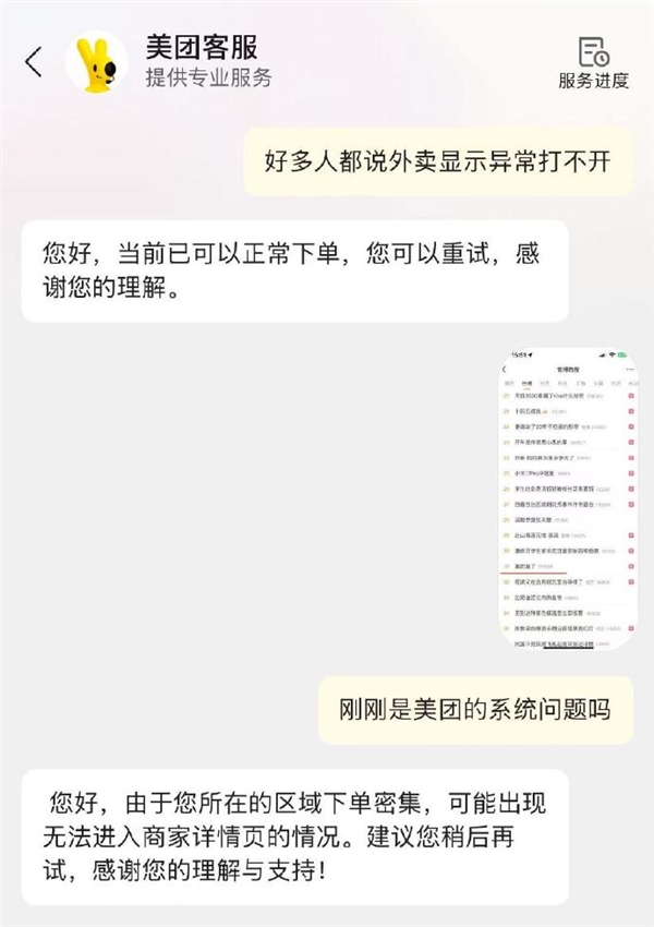 “美团崩了”登上热搜 客服回应页面异常:区域下单密集所致 !