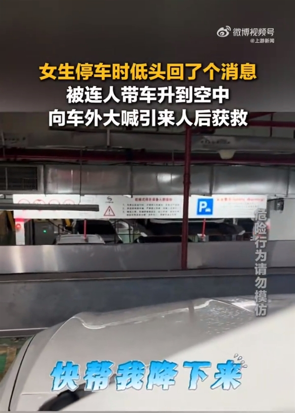 据了解,当时,女子将车停到立体停车场后没有立刻下车,而是坐在车里看手机,再一抬头发现自己和车一起升了上去。
